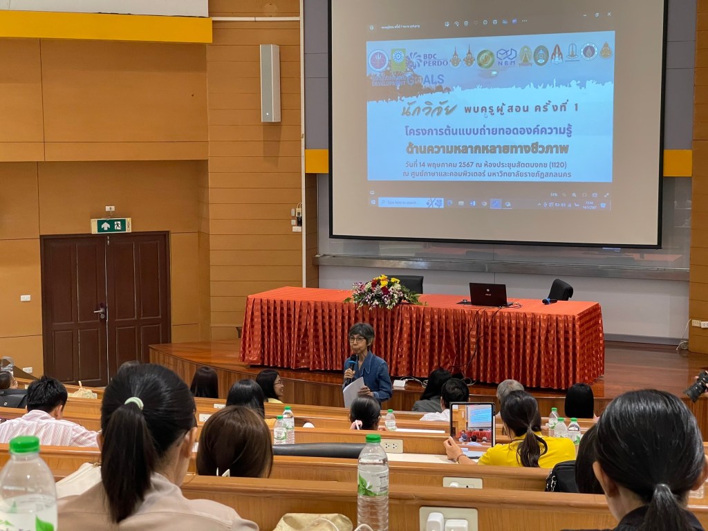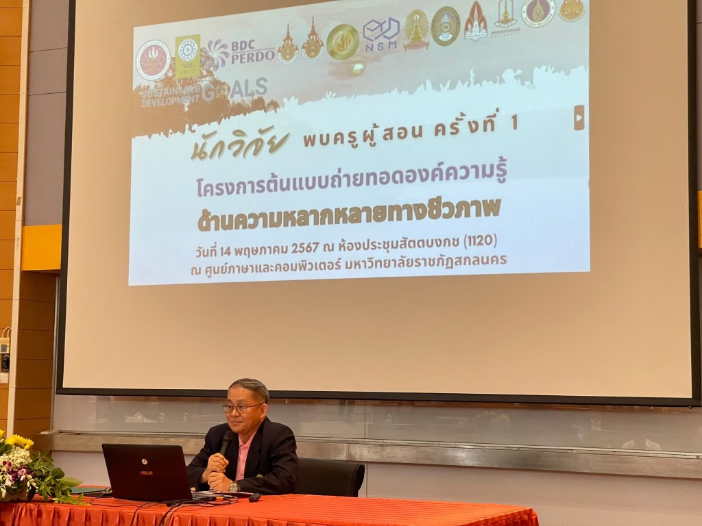 ศูนย์ความเป็นเลิศด้านความหลากหลายทางชีวภาพ คณะวิทยาศาสตร์ จุฬาลงกรณ์มหาวิทยาลัย นำโดย ศ. ดร.สมศักดิ์ ปัญหา ผู้อำนวยการศูนย์ฯ จัดการประชุมนักวิจัยพบอาจารย์ผู้สอนในโรงเรียน ครั้งที่ 1 “โครงการต้นแบบการถ่ายทอดองค์ความรู้ด้านความหลากหลายทางชีวภาพ” โดยได้รับเกียรติจาก ศ. ดร.ทศวรรษ สีตะวัน รองอธิการบดีมหาวิทยาลัยราชภัฏสกลนคร กล่าวเปิดงานในครั้งนี้ ในวันอังคารที่ 14 พฤษภาคม พ.ศ. 2567 เวลา 08.00-16.00 น.ณ ห้องประชุมสัตตบงกช (1120) ศูนย์ภาษาและคอมพิวเตอร์ มหาวิทยาลัยราชภัฏสกลนคร