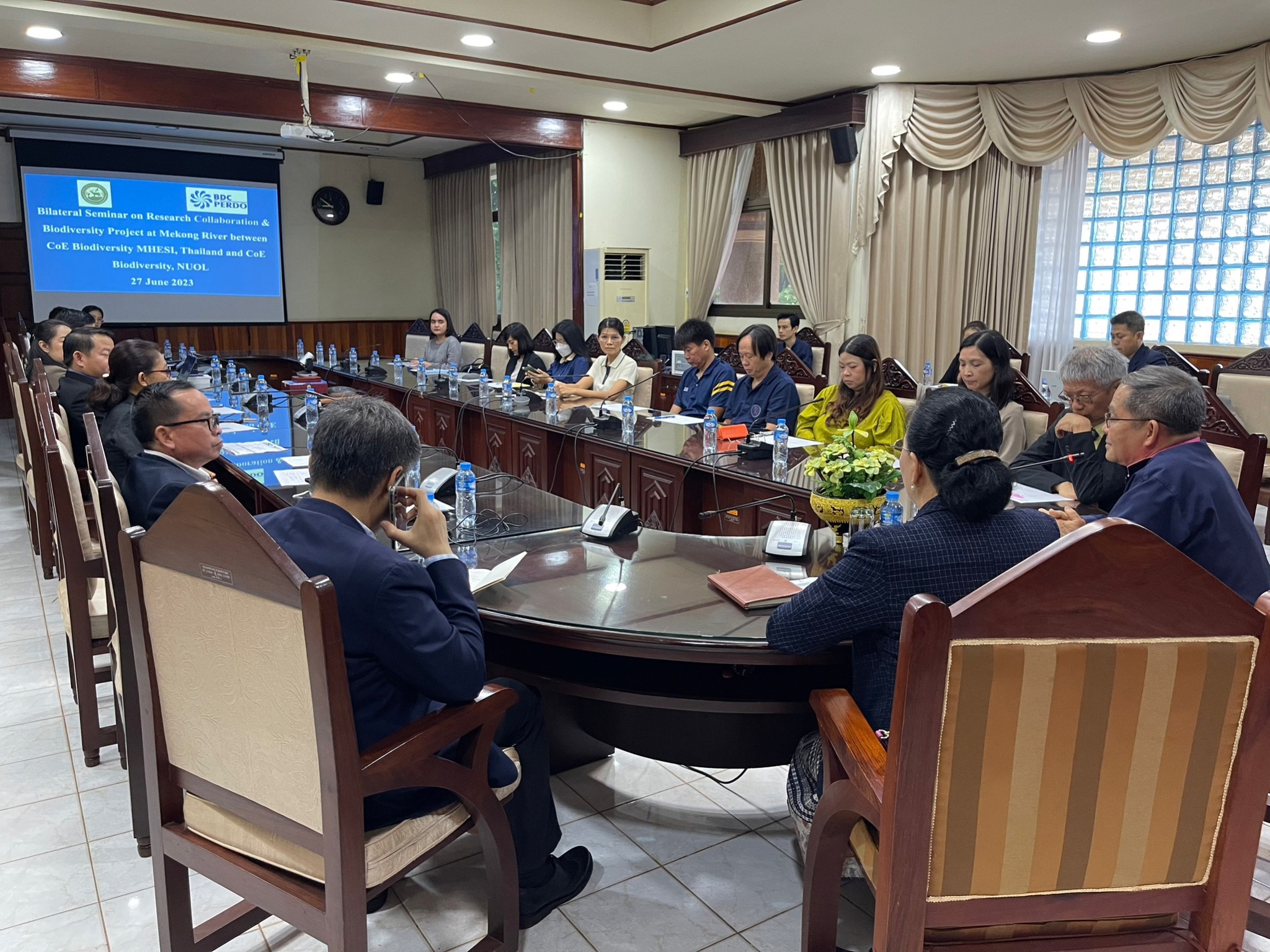 งานประชุม “Bilateral Seminar on Research Collaboration & Biodiversity Project at Mekong River” ที่มีความร่วมมือระหว่างประเทศไทยและสาธารณรัฐประชาธิปไตยประชาชนลาว นำโดยศูนย์ความเป็นเลิศด้านความหลากหลายทางชีวภาพ จุฬาลงกรณ์มหาวิทยาลัยและมหาวิทยาลัยในเครือข่ายกว่า 15 มหาวิทยาลัย ร่วมกับมหาวิทยาลัยแห่งชาติลาว ซึ่งกล่าวเปิดงานโดย NUOL Vice President Associate Prof. Dr. Somchanh Bounphanmy รองอธิการบดีมหาวิทยาลัยแห่งชาติลาว และ Prof. Dr. Somsak Panha ผู้อำนวยการศูนย์ความเป็นเลิศด้านความหลากหลายทางชีวภาพแห่งจุฬาลงกรณ์มหาวิทยาลัย ซึ่งความร่วมมือในครั้งนี้มีวัตถุประสงค์จัดขึ้นเพื่อวิจัยความหลากหลายของสปีชีส์ ระบบนิเวศ และความหลากหลายทางพันธุกรรม ตั้งแต่โปรติสท์ พืช สัตว์ไม่มีกระดูกสันหลัง สัตว์มีกระดูกสันหลังในพื้นที่ลุ่มแม่น้ำโขง ที่จัดขึ้นเมื่อวันที่ 27 มิถุนายน 2566 ณ มหาวิทยาลัยแห่งชาติลาว นครหลวงเวียงจันทร์ สาธารณรัฐประชาธิปไตยประชาชนลาวที่ผ่านมา