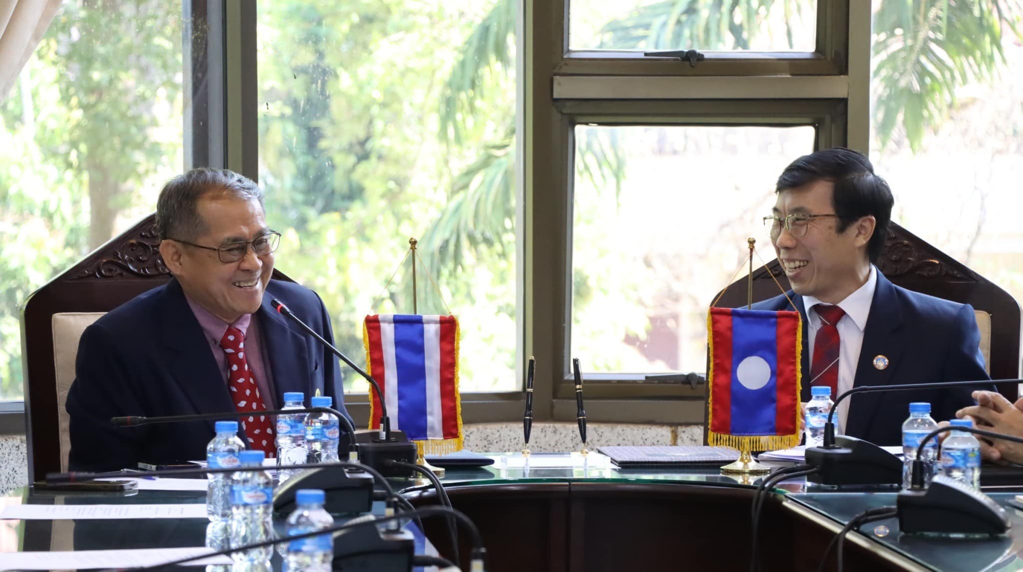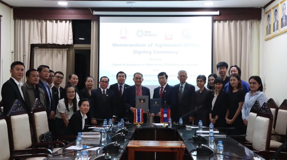 พิธีลงนาม Memorandum of Agreement (MOA) Signing Ceremony ระหว่างศูนย์ความเป็นเลิศด้านความหลากหลายทางชีวภาพ จุฬาลงกรณ์มหาวิทยาลัย และศูนย์ความเป็นเลิศด้านชีวนานาพรรณ มหาวิทยาลัยแห่งชาติลาว กล่าวเปิดพิธีโดย Associate Professor Dr. Dexanourath Seneduangdeth รองอธิการบดีมหาวิทยาลัยแห่งชาติลาว ร่วมกับ Professor Dr. Somsak Panha ผู้อำนวยการศูนย์ความเป็นเลิศด้านความหลากหลายทางชีวภาพ และ Dr. Khamla Inkhavilay ผู้อำนวยการศูนย์ความเป็นเลิศด้านชีวนานาพรรณ เมื่อวันที่ 5 มีนาคม 2567 ณ มหาวิทยาลัยแห่งชาติลาว